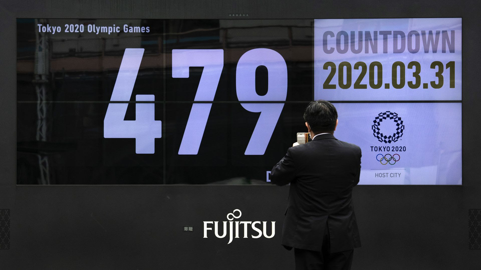 Fotografia serii – Countdown-ul care arată câte zile mai sunt până la începerea Jocurilor Olimpice de la Tokio a fost resetat după ce competiția a fost amânată pentru anul viitor. Jae C. Hong/AP: