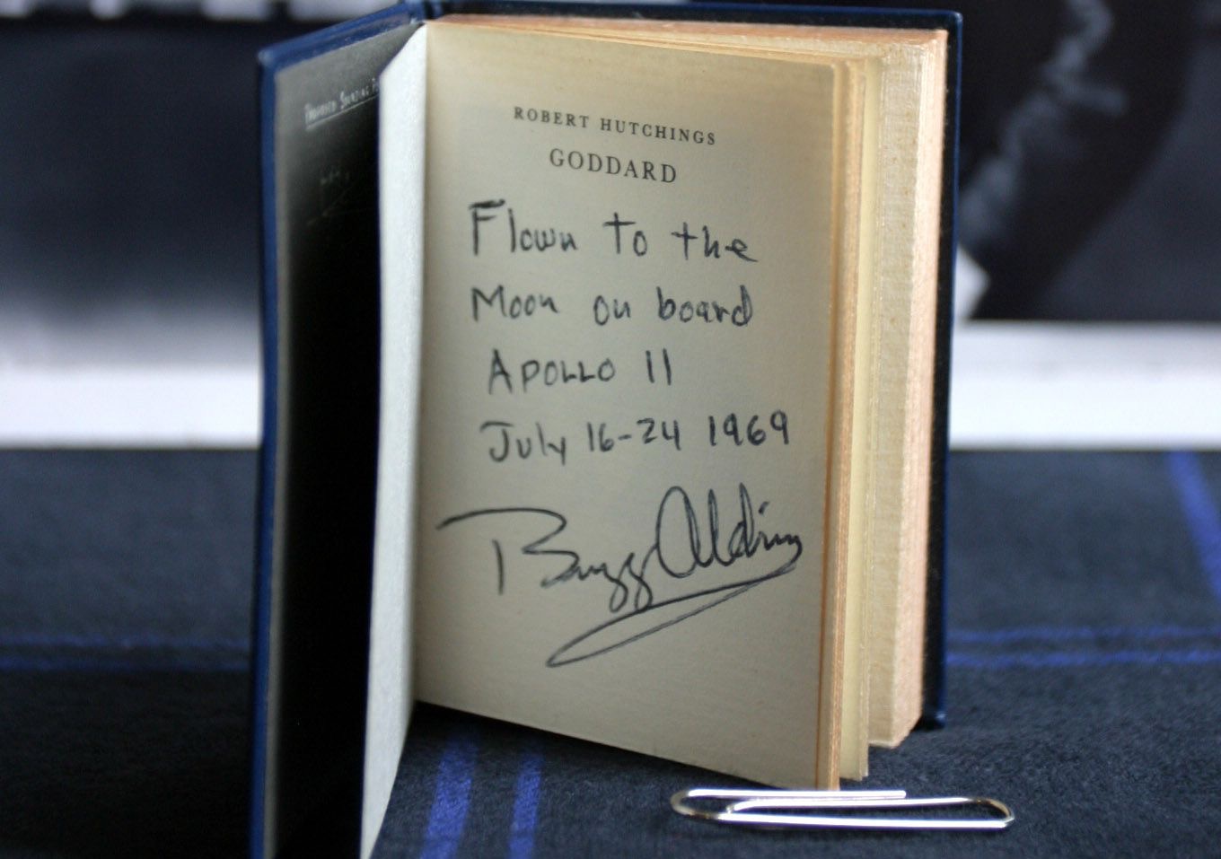 6. Cu ocazia aniversării celor 50 de ani de la aselenizare, am aflat că prima carte ajunsă pe Lună a fost “The Autobiography of Robert Hutchings Goddard, Father of the Space Age”. Volumul în formatul unui card bancar, autobiografia celui considerat părintele rachetelor moderne, a fost dus pe Lună de Buzz Aldrin, trebuia să rămână acolo, dar nu a fost posibil și a fost apoi dăruit văduvei lui Robert H. Goddard. (Boston Globe)