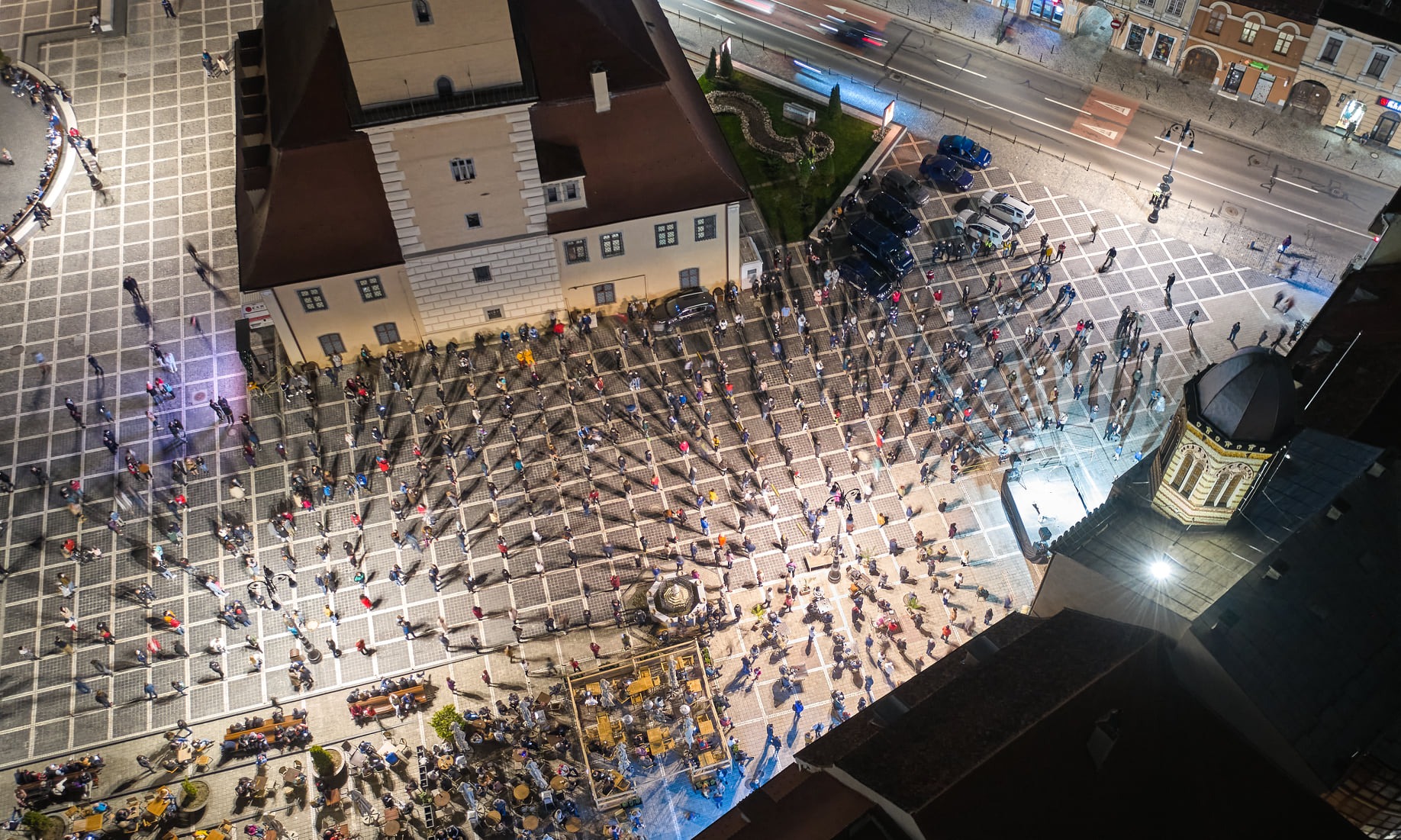Fotografia dimineții – Câteva sute de oameni au celebrat Slujba de Înviere de la Catedrala ortodoxă din Braşov în Piaţa Sfatului, într-o organizare perfectă. Oamenii au respectat la centimetru poziționarea din Piața Sfatului, așezându-se la intersecția liniilor albe care traversează piața: