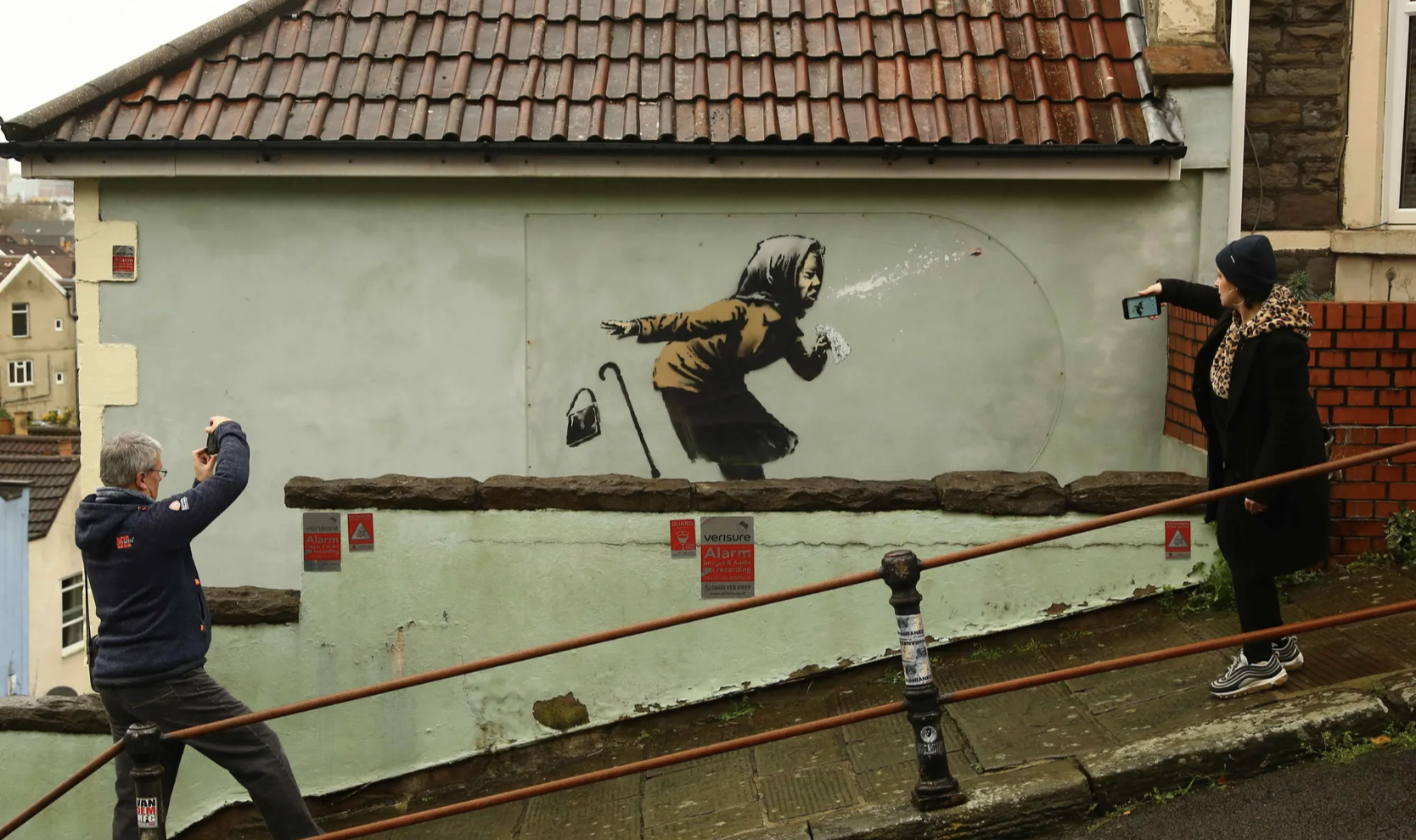 Fotografia dimineții – Ultima lucrare semnată de Banksy, apărută pe peretele unei case din Bristol, Anglia. Geoff Caddick/AFP/Getty Images: