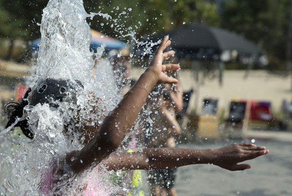 Fotografia dimineții – O fetiță se racorește într-o fântână publica din Antwerp, Belgia. Virginia Mayo / AP: