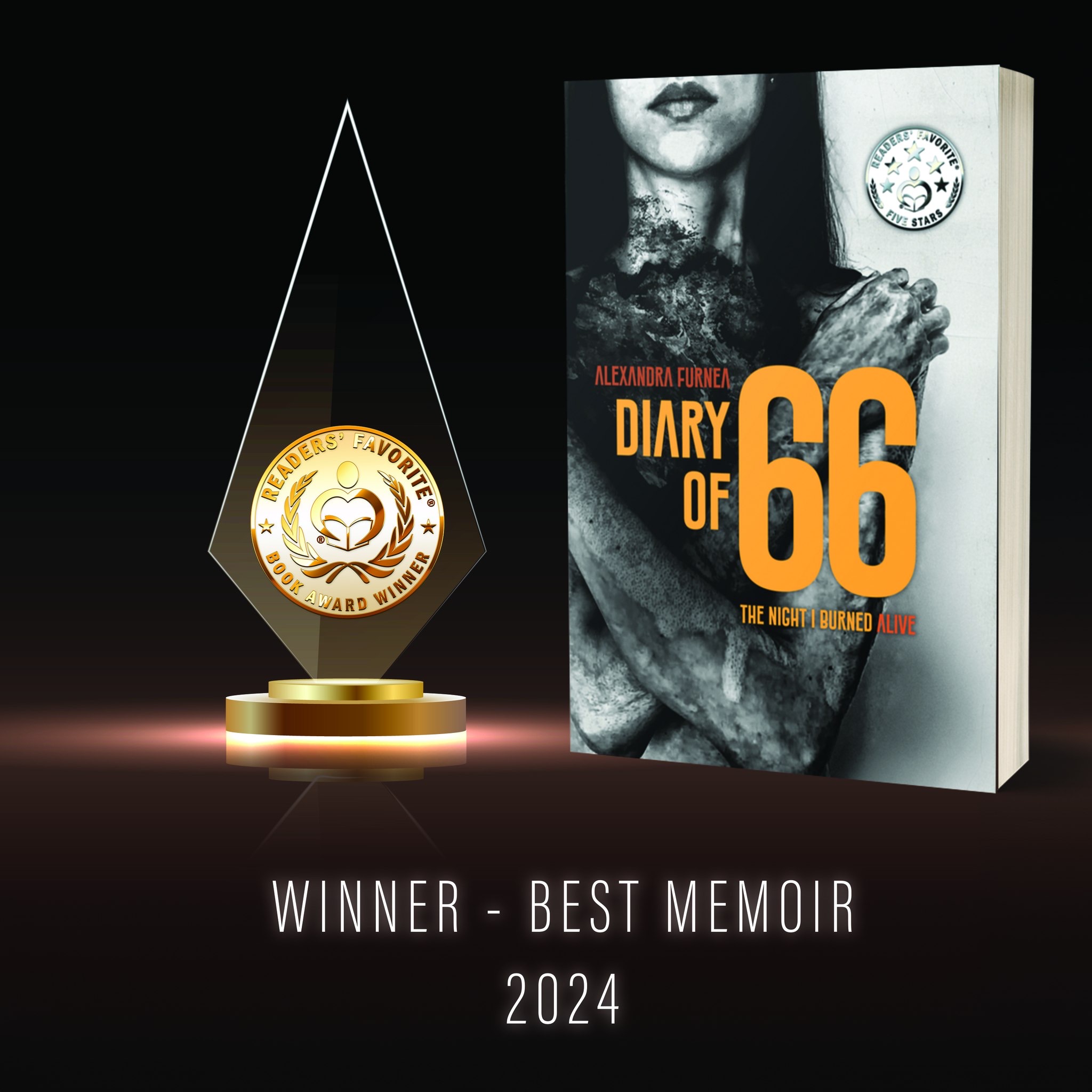 Fotografia săptămânii: Traducerea în limba engleză a volumului „Jurnalul lui 66. Noaptea în care am ars”, de Alexandra Furnea (apărută inițial la Editura Humanitas în 2022), a primit Medalia de Aur pentru cea mai bună carte de memorii la Readers’ Favorite Book Awards. Sursa: Histria Books Facebook.
