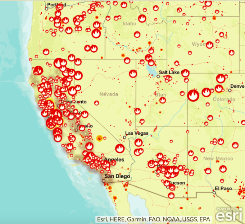 Fotografia dimineții prezintă harta incendiilor din California după ce peste 12.000 de fulgere au lovit statul american în această săptămână: