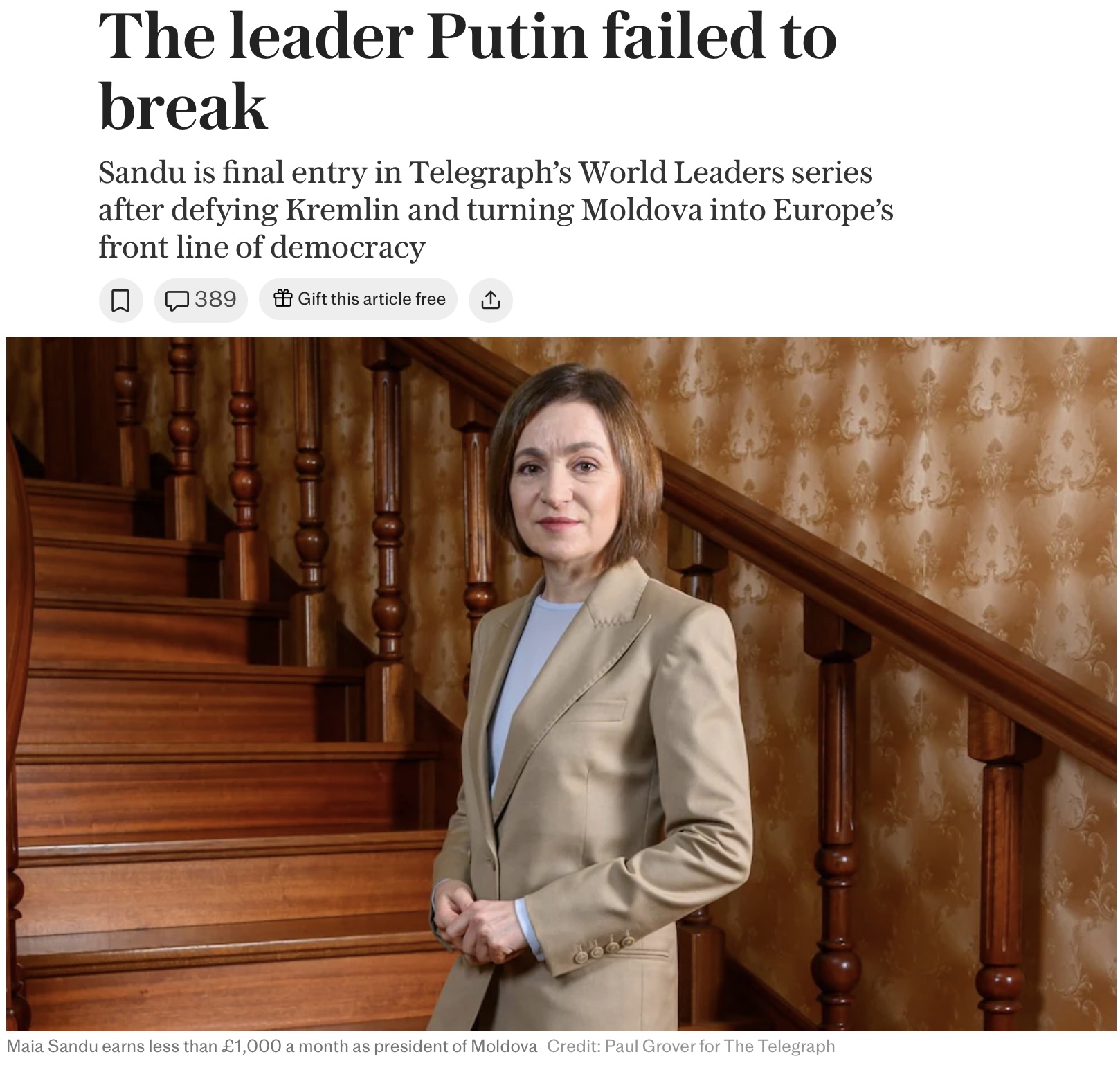Fotografia dimineții – Președinta Republicii Moldova, Maia Sandu, a fost desemnată „Liderul Mondial al Anului 2025” de publicația britanică The Telegraph. „Liderul pe care Putin nu a reușit să-l frângă” caracterizarea jurnaliștilor britanici: