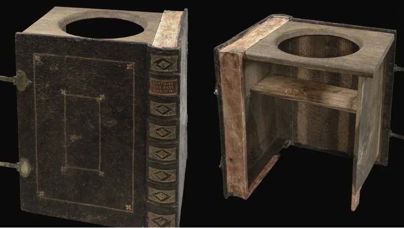 Fotografia ediției: O toaletă din secolul al XVIII-lea, deghizată sub forma unei cărți. Sursă: Mental Floss.