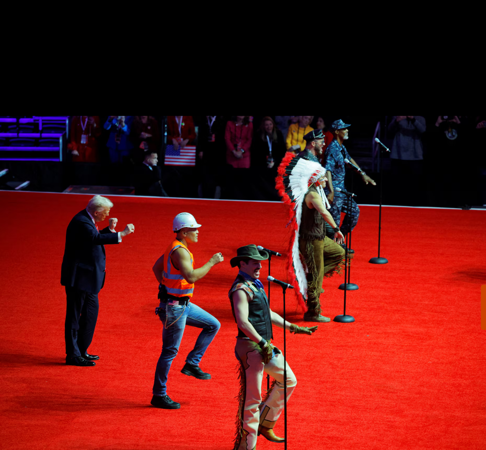 Fotografia dimineții – Președintele ales Donald Trump dansează pe scenă cu trupa Village People la mitingul “victoriei”, organizat duminică seara în Washington DC. Brian Snyder, Reuters: