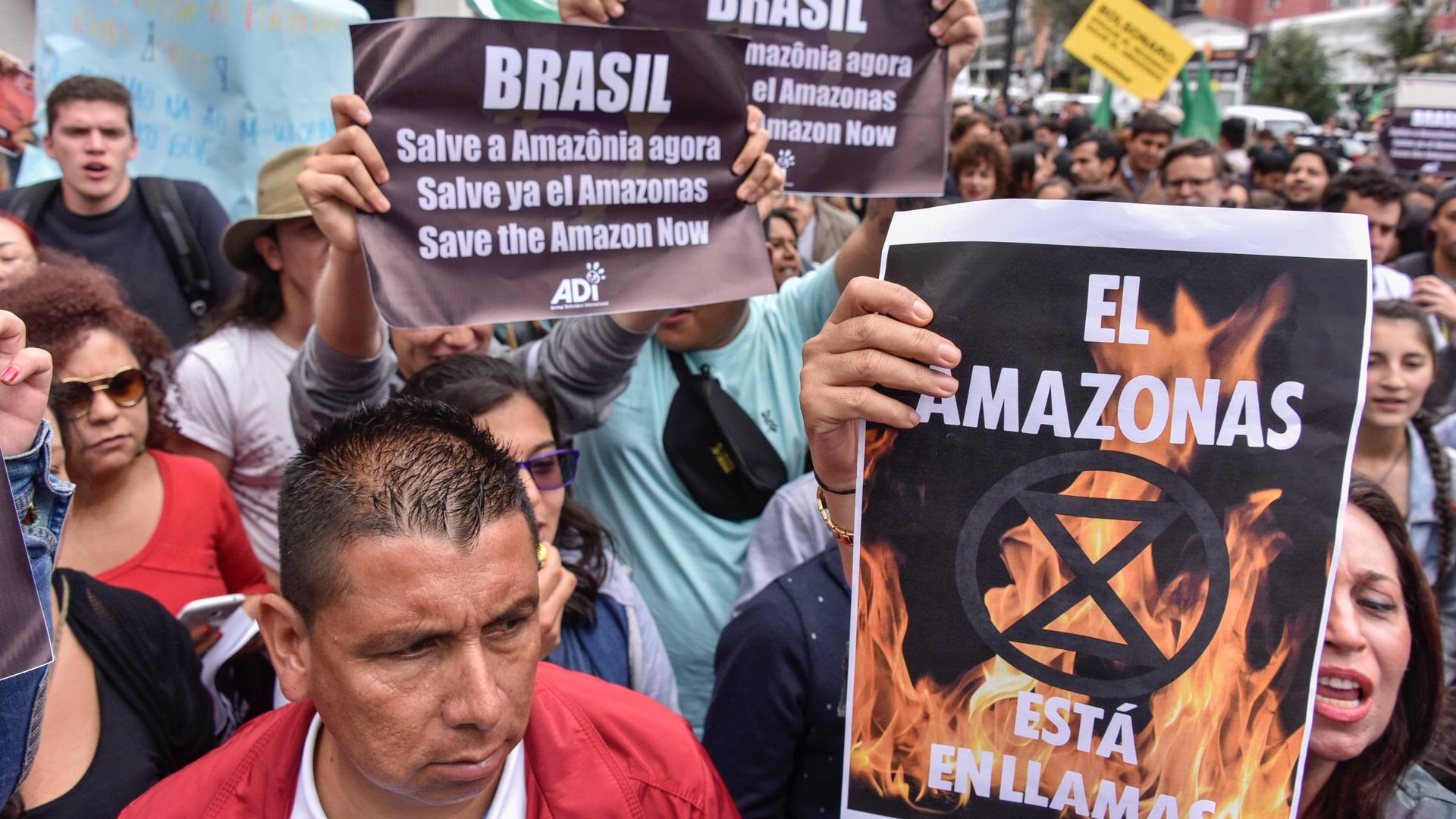 Fotografia dimineții – Proteste în fața ambasadei Braziliei din Columbia împotriva incendiilor care distrug Padurea Amazoniană. Guillermo Legaria Schweizer/Getty Images: