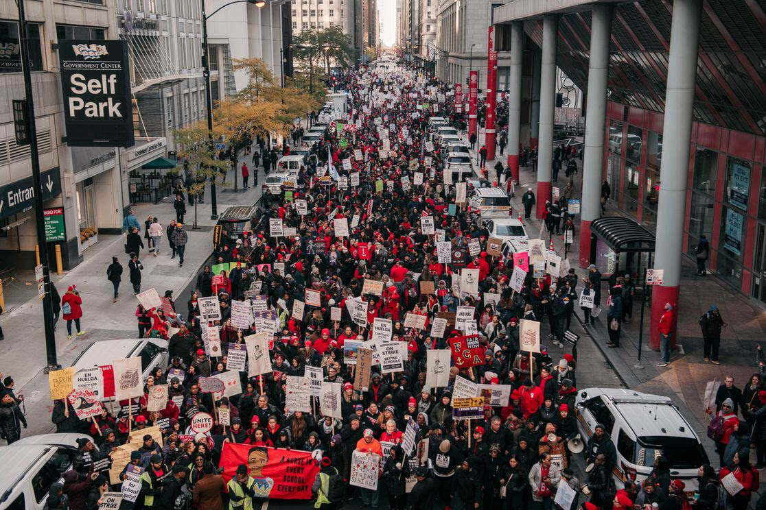 Fotografia dimineții – Mii de persoane au ieșit pe străzi pentru a susține greva profesorilor din Chicago. Scott Heins/Getty Images: