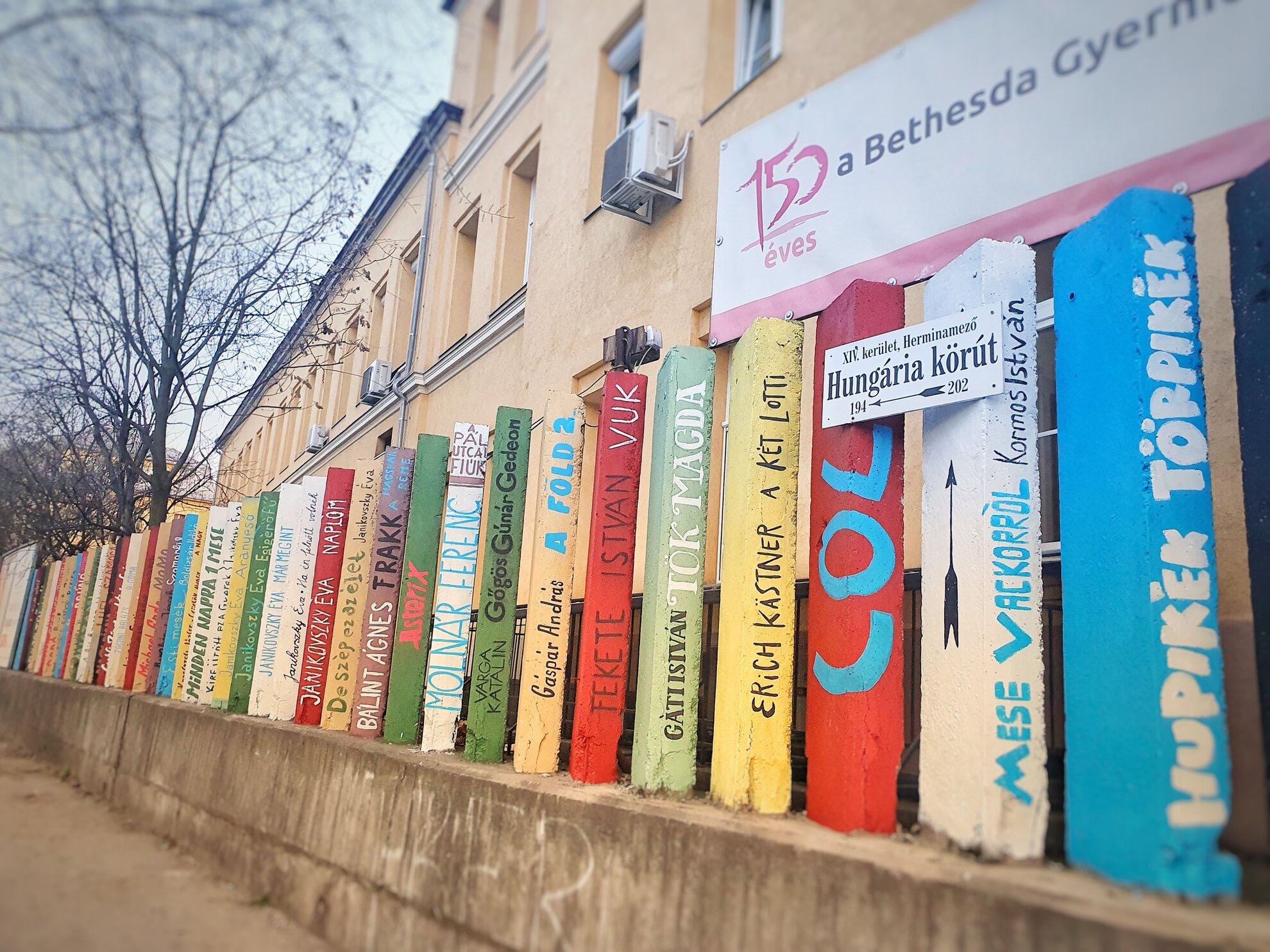 Fotografia dimineții vine de la Budapesta și e preluată din Cronica de Carte. Spitalul pentru copii Bethesda și-a transformat gardul într-o instalație de artă care cuprinde cărți preferate pentru copii: