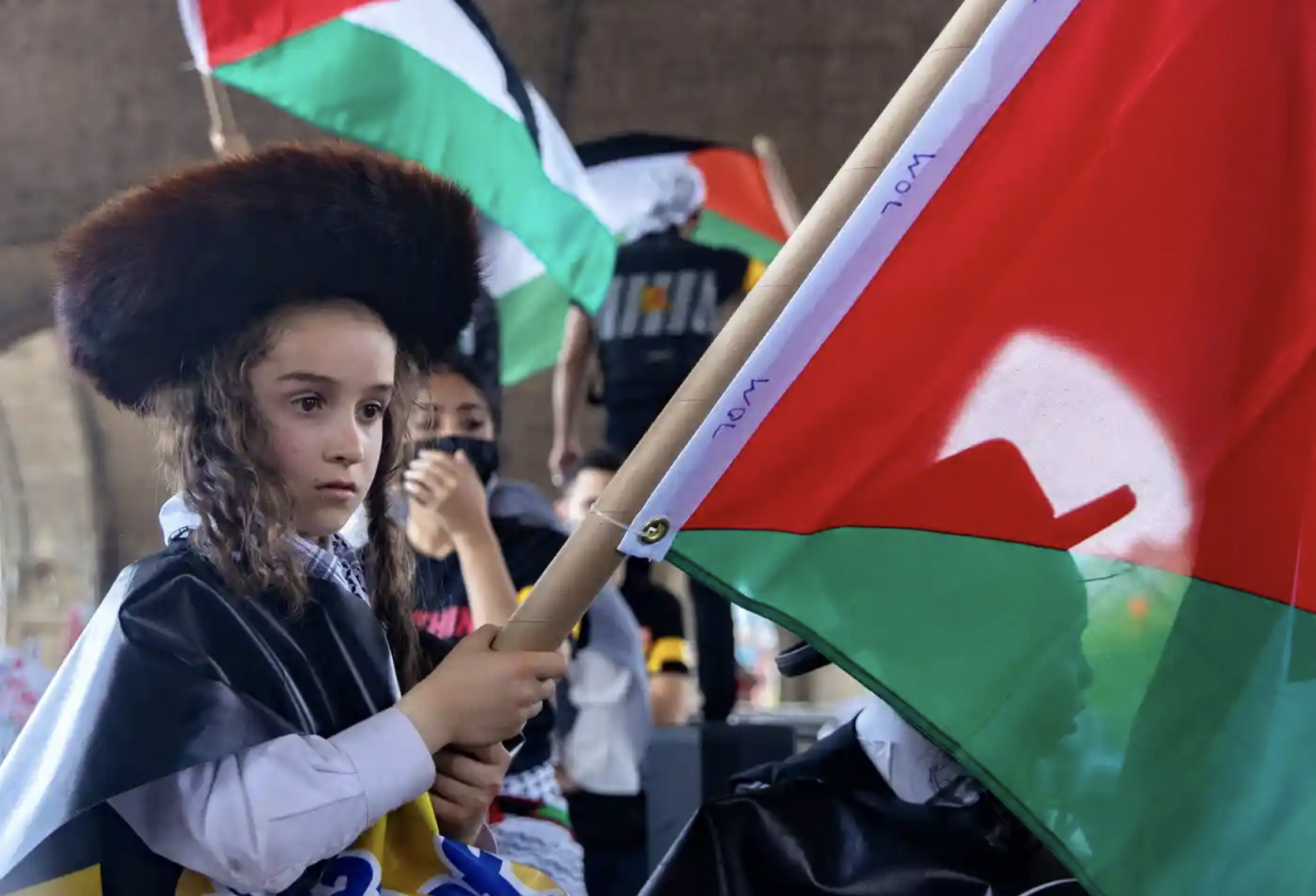 Fotografia dimineții – Un băiat evreu ține un steag al Palestinei în timpul unui eveniment pentru susținerea palestinienilor în Queens, New York. Jeenah Moon/Reuters: