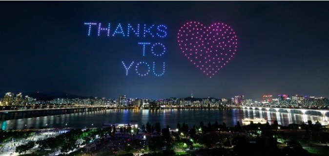 Fotografia dimineții – Sute de drone au fost folosite în Seul pentru a transmite mesaje de mulțumire cadrelor medicale:
